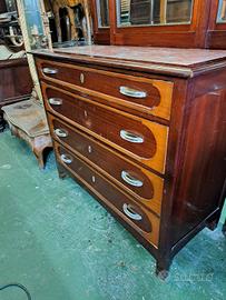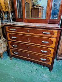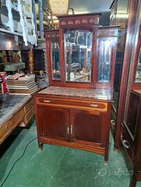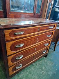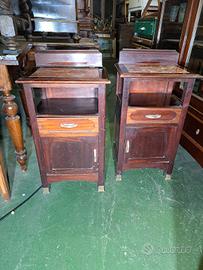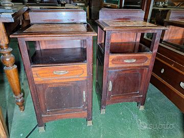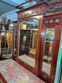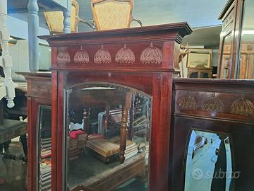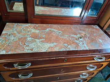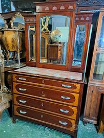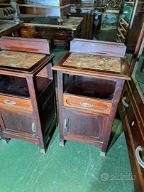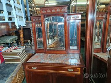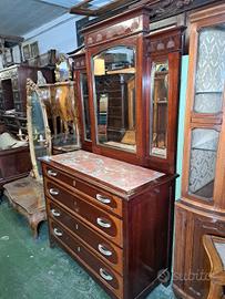 arredo camera da letto liberty in mogano composto da como' con specchio 2 comodini e 1 toletta con specchio. Tutti i mobili hanno il piano in marmo.