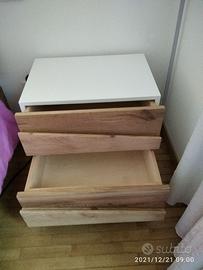 comò costruito in listellare ricoperto in mdf (idoneo per essere laccato uniformemente) per tutta la scocca sia per como e 2 comodini. Misura lungh. 160 prof. 50 h 95 predisposto con gambette in ferro h 15 cm verniciato nero opaco, scocca con spessore 25 mm e disposto partendo da sx con anta (sormonto totale) da circa 60 cm con apertura verso esterno cerniere regolabili ammortizzate interno con 2 ripiani aggiustabili in altezza con ferramenta idonea, lato dx con 3 cassettoni su guide ammortizzate in chiusura parte frontale con inserti in LEGNO SCORTECCIATO CON APPLICATI FRONTALMENTE IN RILIEVO IN MODO DA USARE COME MANIGLIA LE TAVOLE DI ROVERE rustico. 4 gambette in ferro rastremati rotondi laccato tutto bianco rall 9010 opaco e cerato sul frontale in legno. 02 comodini con misura lunghezza 60 prof. 40 h 65 con 4 gambe in tubolare di ferro nero opaco rotonde rastremate scocca in listellare di mdf con 2 cassetti cadauno con sponde in betulla su guide ammortizzate in chiusura, con inserto in legno di ROVERE rustico scortecciato e applicato leggermente obbliquo, finitura laccato bianco coprente su tutta la scocca mentre su legno cerato. il prezzo NON COMPRENDENTE DI IVA. como e comodini sono già stati prodotti su commissione Non teniamo magazzino ma essendo i diretti produttori possiamo costruirla uguale o su specifiche essendo i diretti produttori. ASTENERSI RIVENDITORI E COMMERCIANTI.