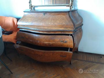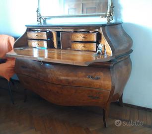 Bellissimo comò vintage, completo di specchiera e due grandi cassetti, ancora in ottime condizioni, vendo. All’interno della ribalta sono presenti 4 cassettini ed uno scomparto portagioie con due ante. •Le dimensioni del comò sono: Larghezza: cm. 125 Spessore: cm. 55 Altezza: cm. 110 •Le dimensioni della specchiera: Larghezza cm. 105 Altezza cm. 95 Vendo il comò completo ad Euro 280 E’ possibile visionarlo a Milano nelle vicinanze di piazzale Piola. Occorrono due persone per ritirarlo. Per informazioni telefonare al 3335857514.