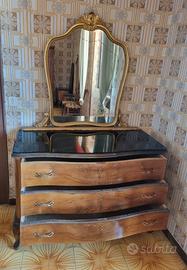 Comò con 3 cassetti in legno e con specchio, misure comò: lunghezza 122cm, profondità 53cm, h 86cm. misure specchio: largo 77cm, h 110cm