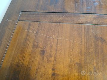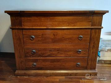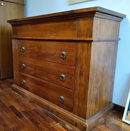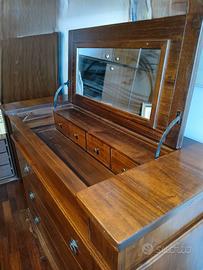 Como' credenza toilette legno arte povera con 3 cassettoni inferiori e un comparto superiore a ribalta con specchio incorporato con 4 cassettini fianchi apribili graffiata sul top in più punti