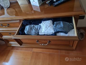 Comó da camera con specchiera in legno di noce chiaro. Misure: lunghezza 146 Altezza 83 Profondità 50