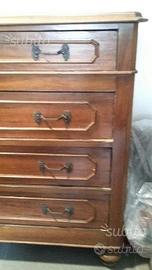 Comò in noce dei primi del 900, con 4 cassetti internamente rivestiti in carta. Necessita di piccoli interventi di restauro conservativo.