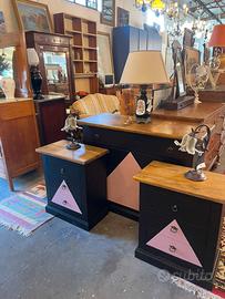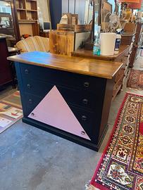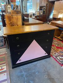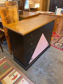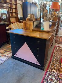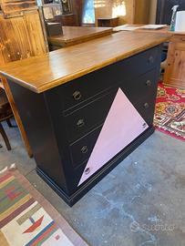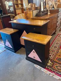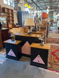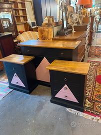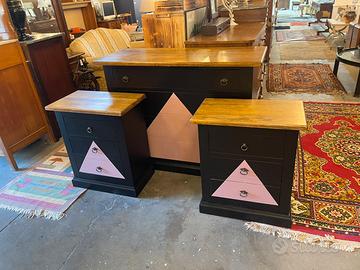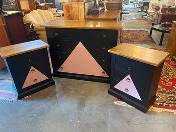 Comò 120x50 H92 Coppia comodini 60x35 H70 nero opaco e rosa antico Legno massello appena restaurati