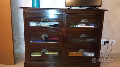 vendo comò e comodini in ottimo stato, color noce legno massello no truciolato. comodini 40x40 h60 comò lunghezza 105 profondità 40 altezza 80