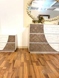 Fantastico set composto da 1 como’ e 2 comodini interamente costruiti con legno di abete.