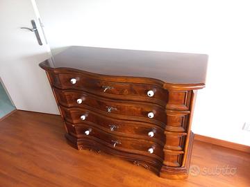 Mobili in legno massello con pomelli in ceramica. Cassetti foderati internamente. Cassetti con struttura ad incastro.
