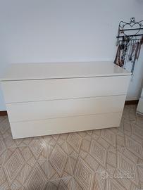 Set da 3, 1 comò e 2 comodini,stile molto versatile adatto per camere moderne e contemporanee,di qualità,colore bianco laccato senza alcun segno di usura. Design moderno caratterizzato un'apertura laterale senza maniglie esterne. Ottime condizioni,come nuovi. Misure: Comò : 125(L)x50(P)x71(H) Comodini: 59x40x43 Possibilità di comprare un armadio abbinata ai comodini,a chi è interessato ci si può mettere d'accordo sul prezzo.