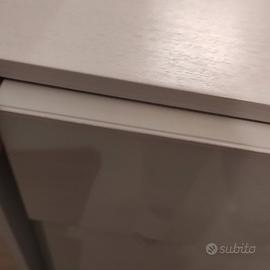 set di due comodini 53 h 41 p 52 l e un comò 105 h 55 p 87 l in legno color ghiaccio con davanti in vetro tenuti molto bene e di legno bello pieno