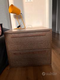 Como’ con 3 cassettoni, in abbinamento due comodini con due cassetti color tabacco. Misure como’ 128x 48x h 69 cm - misure comodini: 50x46x h 43 cm