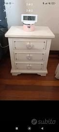 Comò e due comodini stile shabby in eccellenti condizioni. I comodini hanno tre cassetti e il comò due cassetti grandi e due piccoli. Acquistati due anni fa a €500