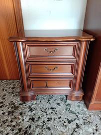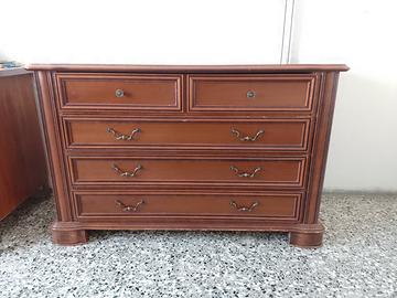 Comò a 5 cassetti, misure cm 134 x 51 x 85 h e comodino coordinato. Condizioni come da foto.