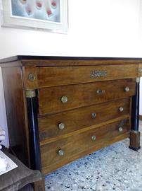 Vendo Comò Impero Veneto dell'800, in noce, a 4 cassetti, con cornice e guarnizioni in bronzo. Il comò è stato lucidato da un restauratore nel 2016. Se telefonate a Graziano 340-4110406 dalle 10 alle 19. Non si spedisce in nessun modo, la merce va ritirata personalmente e pagata con bonifico anticipato, a Lavagno (VR).