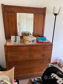 Comò in arte povera con specchio e piano in marmo rosso Verona,ideale per arredamento rustico