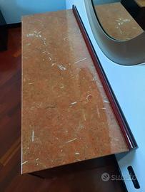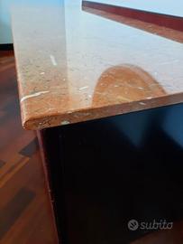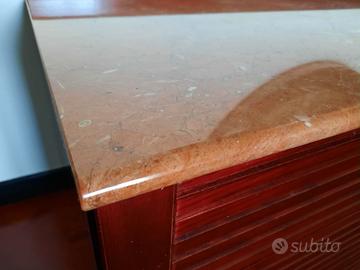 Comò in legno color mogano, con ripiano in marmo granito rosa, con n.6 cassetti. Misure comò: cm.155x60 – misura cassetti cm.75 larghezza. Smontaggio e trasporto a cura dell’acquirente.