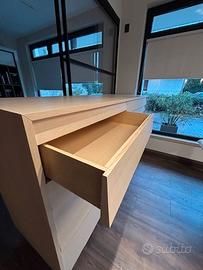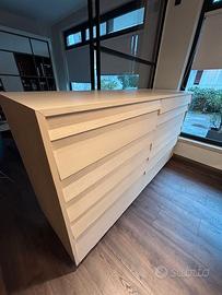 Vendo elegante e capiente comò artigianale in listellare di frassino, finitura verniciata naturale che valorizza la venatura del legno. Il mobile è composto da 13 cassetti disposti in modo funzionale, ideale per ambienti raffinati come camere da letto, studi o salotti.