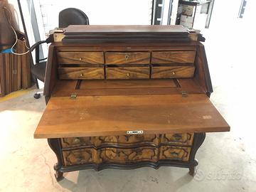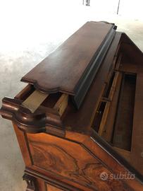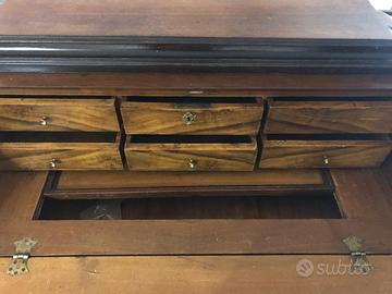 Secretaire a tre cassetti con tre segreti. Essenza noce e radica noce. Larghezza circa 1,10 m Altezza circa 1,10 m Profondità circa 50 cm 380€