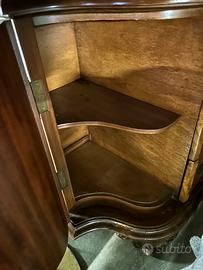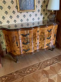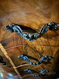 Comó in radica con piano di vetro Perfettamente in ordine dotato di 3 cassettoni e 2 sportelli laterali con riposni Maniglie lavorate che danno al Mobile una certa eleganza e importanza Lungh 160 Prof 60 H 93 Possibilita di comodino uguale