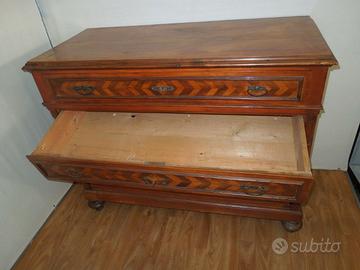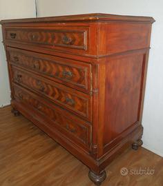 Comò in legno intarsiato stile Impero con 4 cassetti