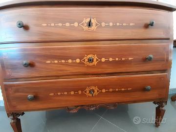 COMO' IN LEGNO STILE LUIGI XVI MARCHIGIANO CON INTARSI E BASAMENTO INTAGLIATO DIMENSIONI LARGHEZZA CM120 PROFONDITA' CM50 ALTEZZA CM92 -