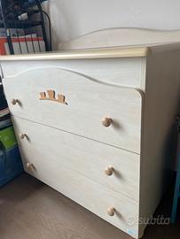 Comò per la cameretta in ottime condizioni, di Pali. Misure 90x50 e altezza 80 cm. Solo ritiro a domicilio. Possibilità di abbinare il lettino con sponde regolabili e cassetto, completo di materasso in memory (150 euro).