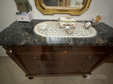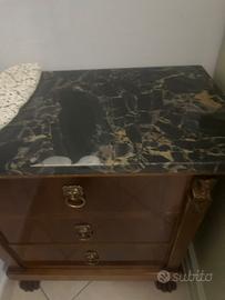 Vendo comò completo di specchio più 2 comodini e lampadaio con marmi sovrapposti verde Guatemala