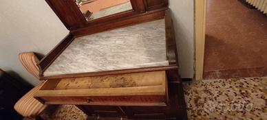 Piano in marmo e specchio originali, cassetto e ripiano chiuso con antine nella parte inferiore.
