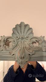 Comó verde salvia restaurato in stile shabby.. Cassetti molto capienti e che scorrono bene. Presenta dei graffi nel piano. Si possono vedere dalla foto Misure mobile 133 x 49 x h 81.5 Misure Specchio 96x 104 h Ritiro a Fermignano