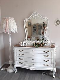 Cassettiera comò chippendale rifatto in stile shabby color bianco, seguici su Facebook SHABBY CHIC sandra tamiazzo