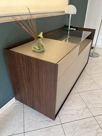 Vendo comó San giacomo modello Cabaret: colori legno rovere termotrattato e cassetti laccato opaco ombra. Misure: larghezza 152 cm, altezza 75,5 cm, profondità 57 cm. Vendo per cessata attività. Mai usato. In esposizione in show room. Possibilità di consegna gratuita entro 40 km, oltre da concordare. Prezzo leggermente trattabile se proposte di acquisto rapide.