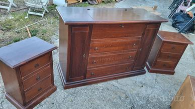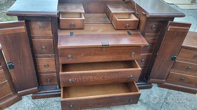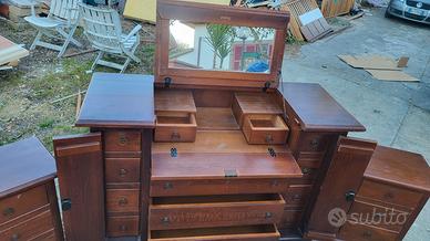 Vendo mobile comò stile secretaire, ottima fattura, con specchio e molti cassetti, incastri a coda di rondine e legno massello, ottimo stato , disponibili comodini. Possibilità di trasporto a domicilio