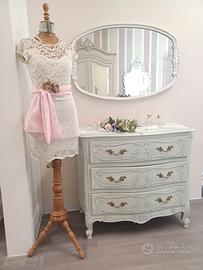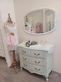 como' cassettiera francese provenzale in legno noce intagliato con restyling shabby chic colore verde salvia. profilo instagram brocanteshabby