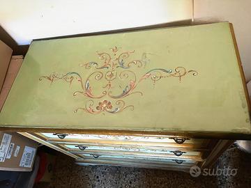 Vendo como' color beige, con disegni, sui cassetti, e sopra al piano. Sul piano sopra, c'è un vetro.