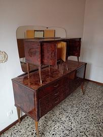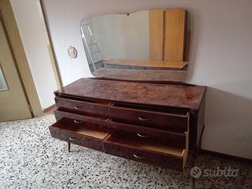 Comò 6 cassetti con piano in vetro Grande specchio Comodini con piano in vetro e sportelli