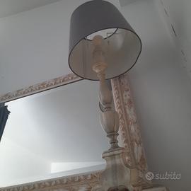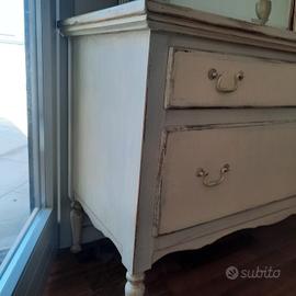 stile shabby chic in legno trattato con due cassetti. misura cm 120 x cm 50 altezza cm 80 l specchio cm 95 x 100 cm lampada con cappello grigio alta cm 80