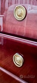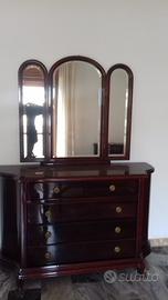 Vendo comó con 3 cassettoni davvero spaziosi e 2 cassetti più piccoli utili per riporre orologi e gioielli, il mobile include una specchiera con ante di chiusura per copertura specchi. Il comó è unico nel suo genere, lo stile inglese che lo caratterizza lo rende un elemento elegante sia per le camere da letto che per il soggiorno, la struttura è perfetta senza segni di usura, presenta due piccoli graffi nel retro del piede posteriore ma per il resto è immacolato.