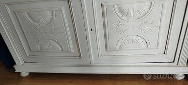 Comò toeletta antico,con piano in marmo bianco senza specchio, bellissimo, ridipinto di bianco