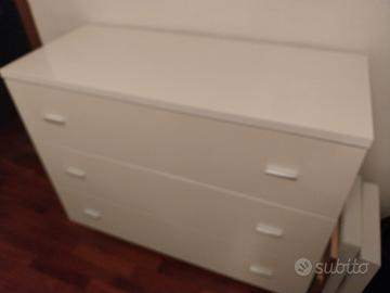 Comò tre cassetti bianco laccato mondo convenienza collezione "marte" dimensioni lunghegga 107 cm altezza 80 cm larghezza 45 cm ottimo stato zona torrevecchia