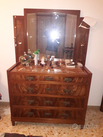 Comò in radica inizi 900 con marmo sulla base sopra i cassetti e ampio specchio nella parte superiore, il prezzo è trattabile, pagamento in contanti. No perdi tempo