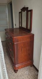 Vendo comò vintage con specchiera tripartita, presumibilmente produzione italiana anni '30/'40.