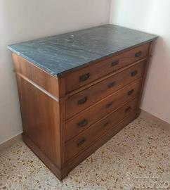 Comò a cassetti in legno massello con ripiano in marmo grigio. Dimensioni in cm: Larghezza 116 x Profondità 57 x Altezza 93 Solid wood chest of drawers with grey marble top. Dimensions in inches: Width 45,66 x Depth 22,44 x Height 36,61