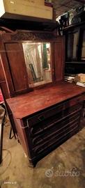 primi 900, misure:altezza cm 85, profondità cm 47,5 lunghezza cm 113,un piedino da rifare,vetro molato .misure specchio cm 100 x 78,5 .
