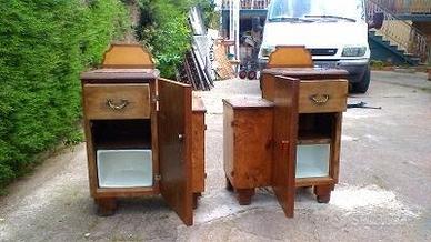 coppia di comodini antichi in radica di noce..forma particolare..con vaso di porcellana all'interno...con piano di marmo..misure altezza 80...larghezza 52 ...profondità 35 ...nella seconda foto si vede un piccolo difetto sul piano della parte più bassa del comodino...euro 160 ....ritiro veloce a mano presso latina
