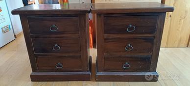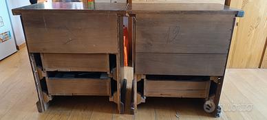 2 comodini arte povera, legno massello, la fodera posteriore è stata tolta per raggiungere le prese elettriche. Prezzo per entrambi, si vende solo la coppia. Preferibile ritiro in loco.