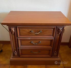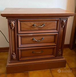 Comodini camera da letto altezza:64 cm larghezza: 67 cm profondità:36,5 Tre cassetti, buono stato, color marrone scuro Il prezzo é per entrambi