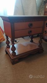 Due comodini per camera da letto. Stile antico con decorazioni. Dimensioni 37x42x56 (cm) Venduti in coppia. I comodini fanno parte di un arredamento camera completo fornito di armadio e cassettiera. Potete trovare i relativi annunci sul mio profilo.