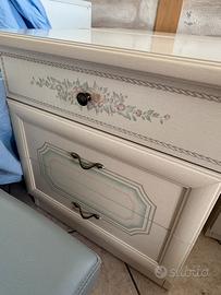 comodini, cassetteria e specchio stile shabby