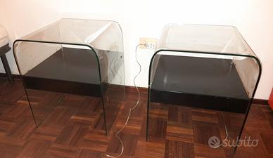 coppia di comodini disign manifattura Svizzera cristallo incurvato 48x46x 59h