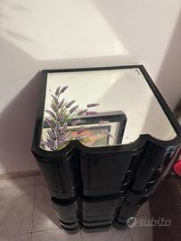 Coppia comodini laccati neri con piano a specchio e disegno a fiori come decoro remo vibile