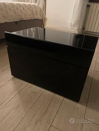 Vendo due comodini nero lucido da camera con rotelle in perfette condizioni, composti da un cassetto ciascuno e possibilità di usarlo come tavolino per colazione/pc ecc..